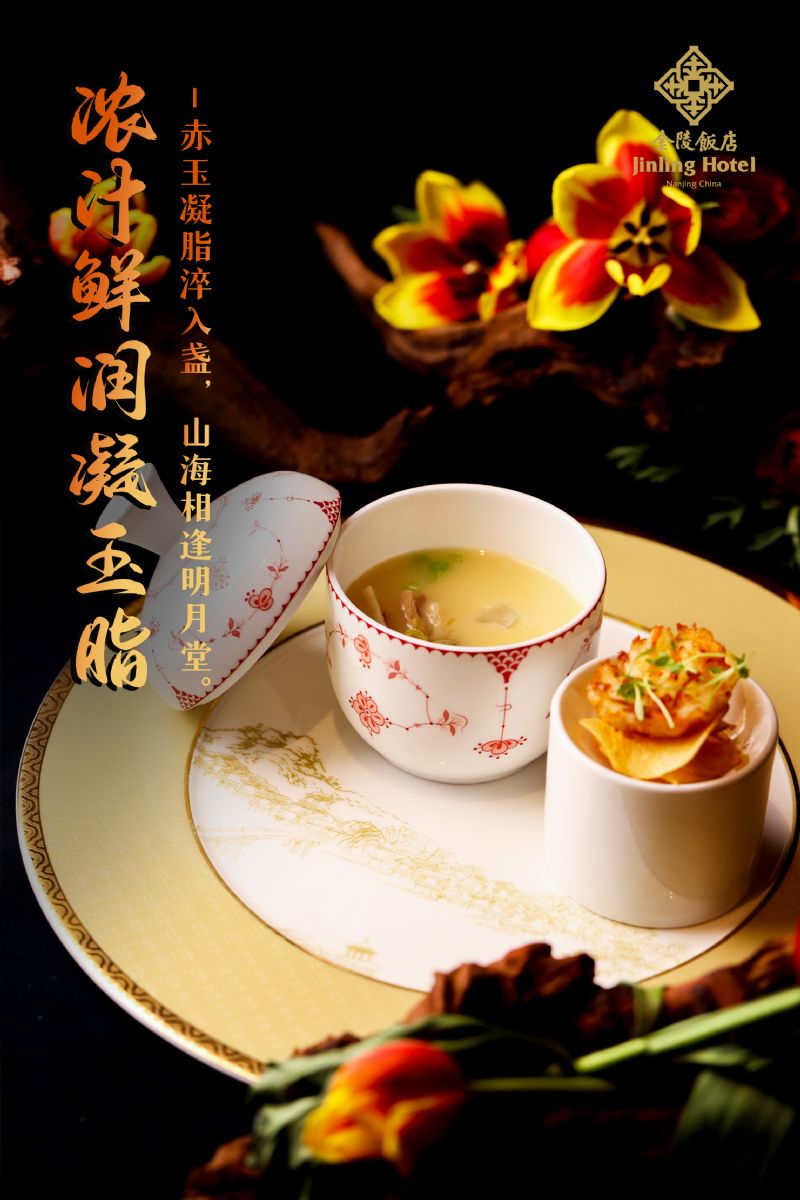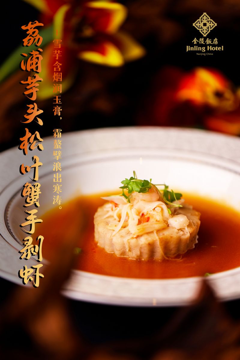 “浓汁鲜润凝玉脂”、“荔浦芋头松叶蟹手剥虾”,一盅暖汤,一盏鲜润,形意相合,可观可赏,将金陵的历史与文化融入美食之中,尽显冬日食事之趣。金陵饭店创新菜品“金陵之韵”宴末登场,从形到味都书写着金陵大厨们的匠心,将味道以诗意描绘,功虽繁但不减,香甜味蕾,温暖舌尖。