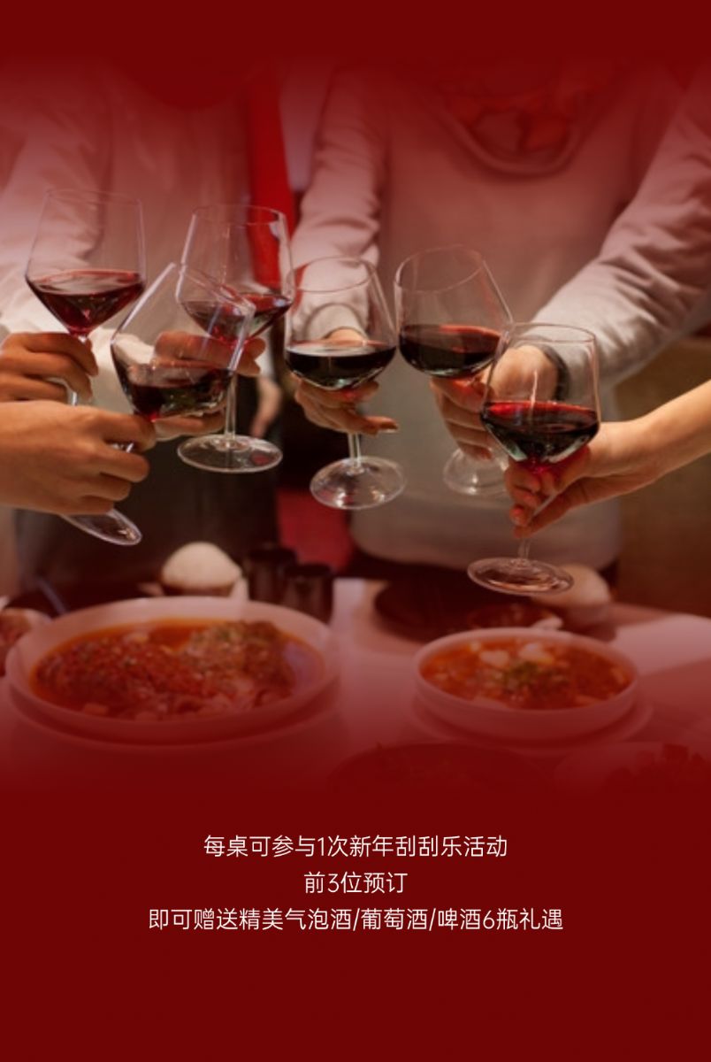 为增添除夕夜的喜庆与互动乐趣,酒店还准备了多项惊喜福利:每桌宾客均可获赠一次“新年刮刮乐”抽奖机会,让福气在欢声笑语中随时开启;前三位成功预订的家庭或团体,更将额外获赠精美气泡酒、葡萄酒或啤酒共计6瓶,为团圆宴增添微醺愉悦。