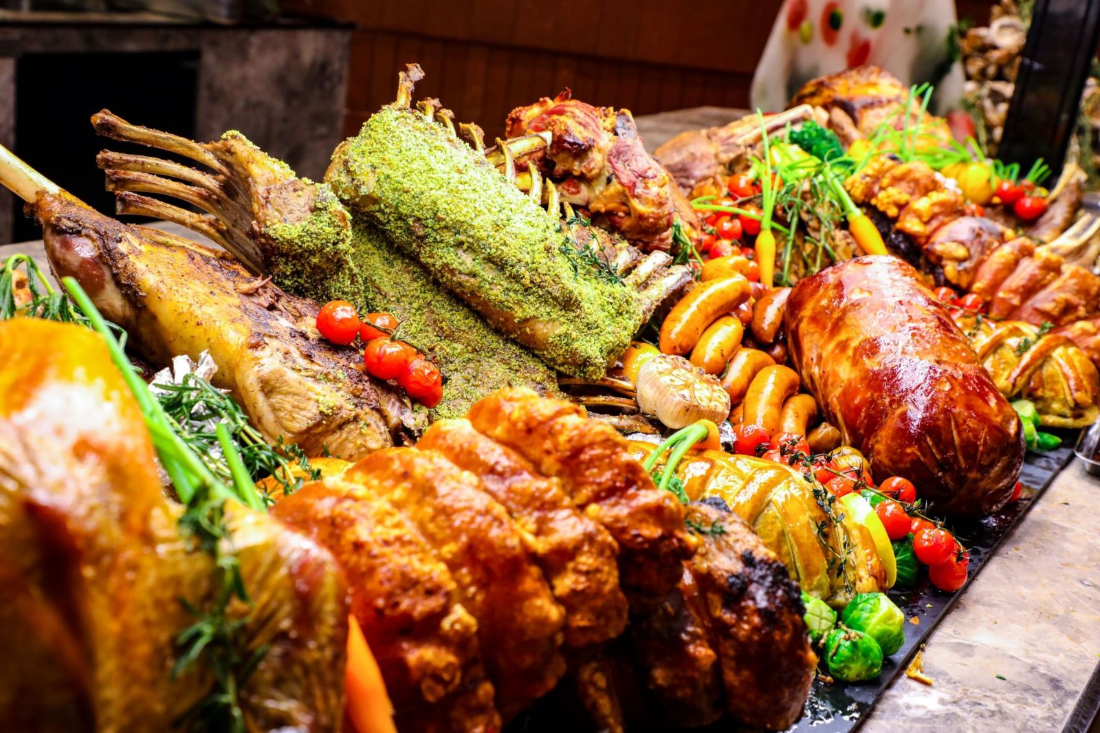 现开金枪鱼的鲜、佛跳墙的醇、战斧牛排的香,裹着圣诞火鸡腿的焦香在舌尖打转,