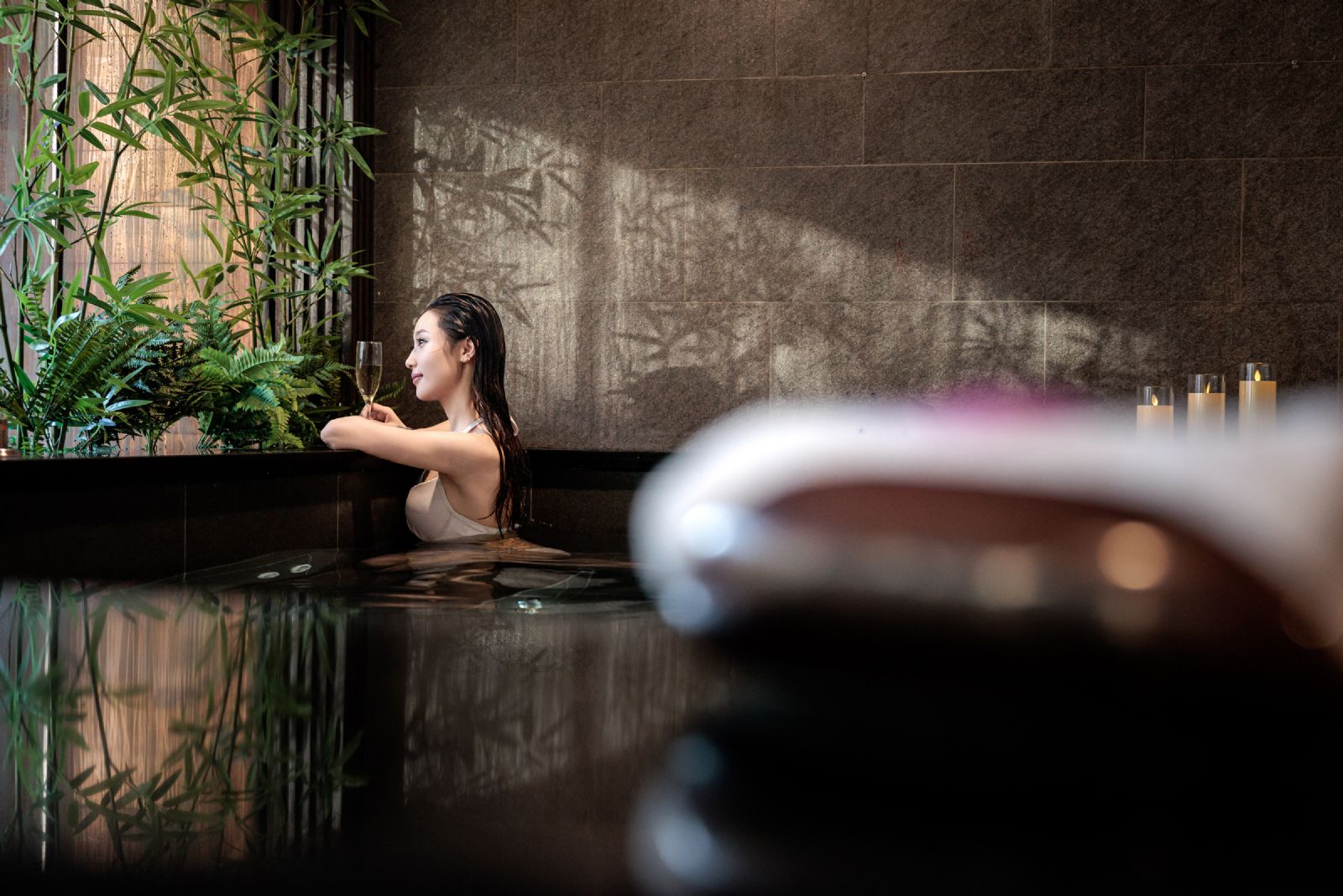 公社汤池以“山新盎然,温润有道”为理念,巧妙利用其得天独厚的地理环境。池水浮动,仿佛汲取了长城山脉的灵气与岁月的宁静。浸润其中,远眺层峦叠嶂,细赏幽芳翠影,身心在温润池水的包裹与开阔山景的涤荡中得到深度松弛与焕活。这里不仅是肌肤的疗愈所,更是远离都市喧嚣、对话古老文明、重获内心平和的诗意栖居地。