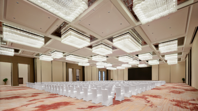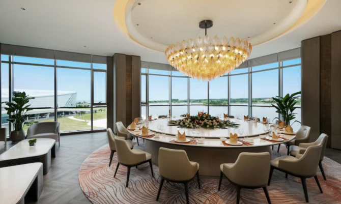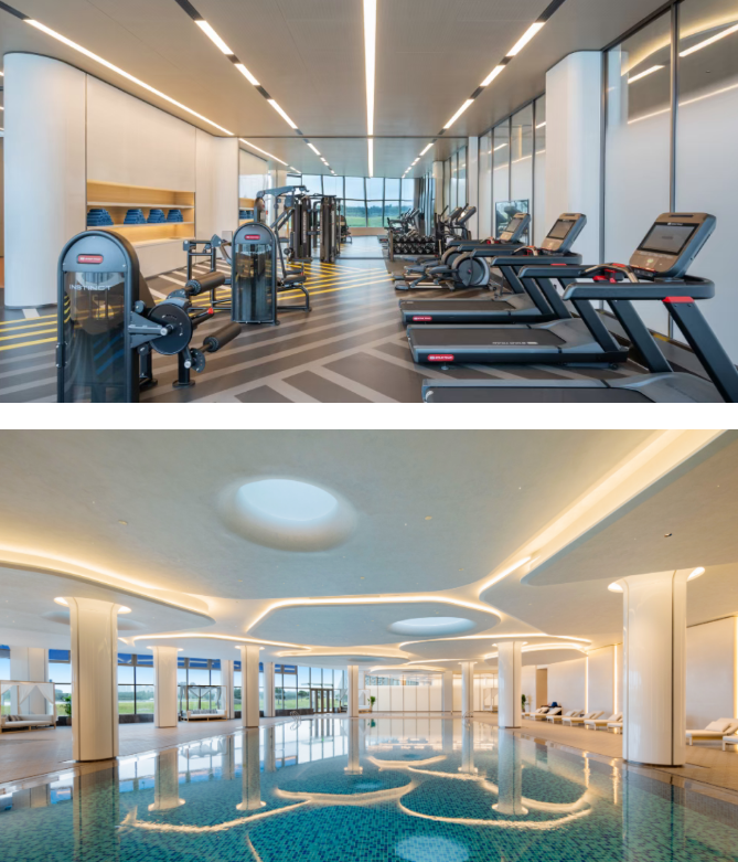 会议与康乐设施更是亮点 ——2900 平方米的多功能会议空间包含 9 间专业会议室和 1630 平方米无柱式宴会厅,搭配先进视听设备与专业服务团队,能满足各类会议需求;1000 平方米的康乐中心则配备高端健身器材、独立瑜伽室和室内恒温泳池,让宾客在旅途中也能保持健康节奏。