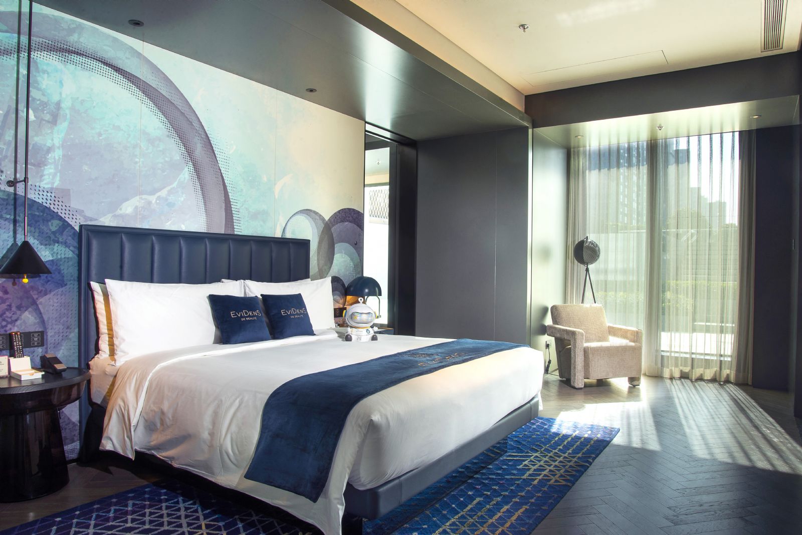 于城市地标定制奢华雅致的疗愈空间,长沙W酒店与伊菲丹联名打造奇幻套房和花园泳池套房,在星城太空主题的居停空间里加入柔软天鹅绒的质感及“臻美“礼盒,让泽塔探险家们不仅能够享受安稳睡眠,更能跟随昼夜节奏感受法式护肤仪式感,让肌肤和身体都获得充沛活力,感受全身心的惬意。