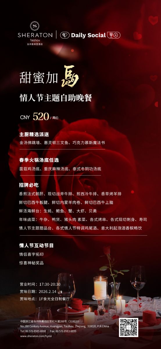 这个情人节,让爱与美味相伴,在台州喜来登开启马年第一份浪漫。