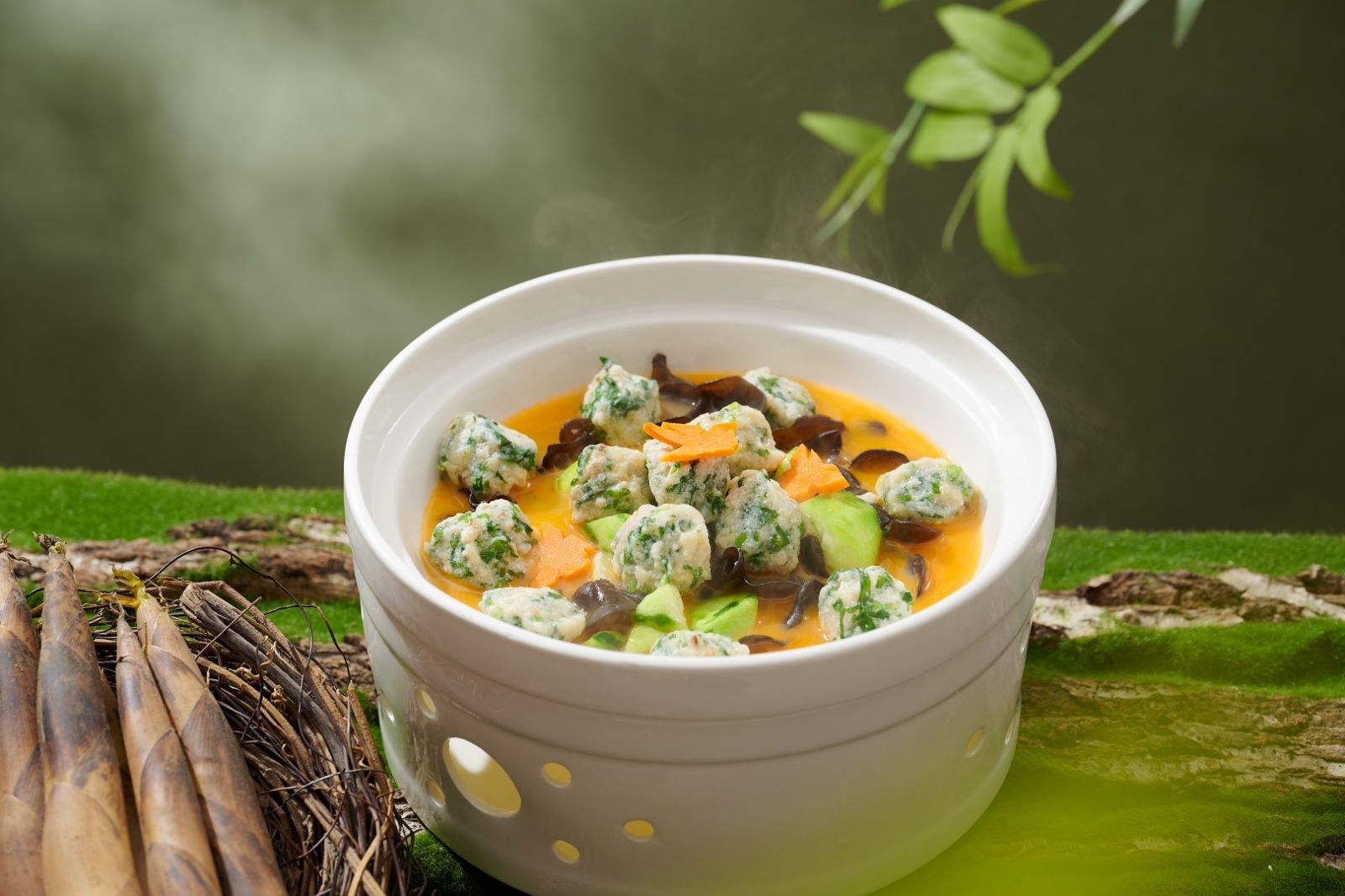手工菜更是春日的匠心表达。松露百花煎酿笋尖取春笋最嫩的一截,酿入弹牙虾胶,煎至金黄,松露的浓郁与笋的清甜在口中碰撞;鲜虾汤荠菜豆腐丸则以春日荠菜与手工豆腐捏丸,以鲜虾浓汤慢火煨熟,清香、鲜美、醇厚三味交融。