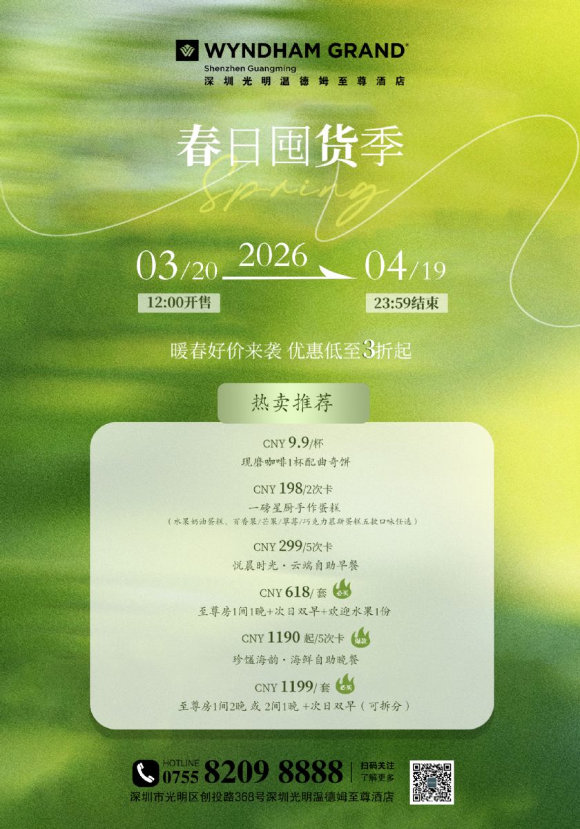 深圳光明!温德姆至尊春促3折起 清明五一端午入住不加价!