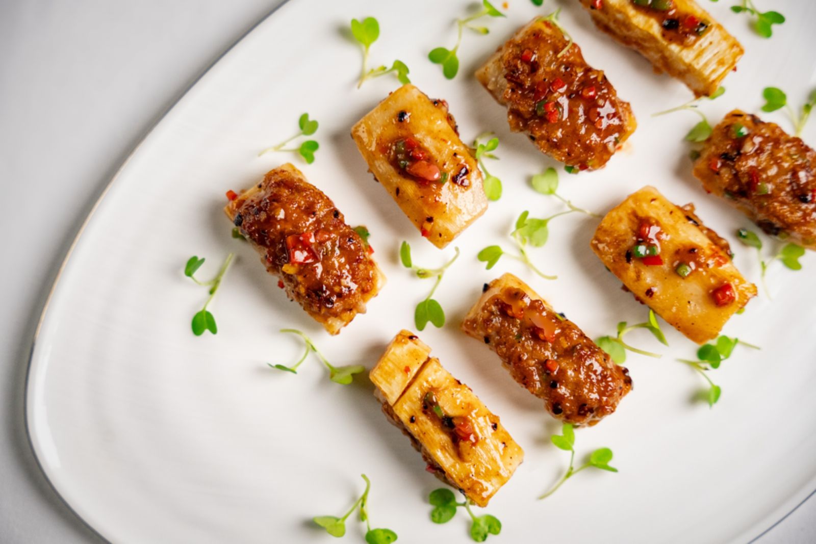 鲜嫩的北极贝,佐以花椒慢煸出香的豆酥,带来麻香酥脆的口感层次,凸显春笋的爽脆与回甘。
