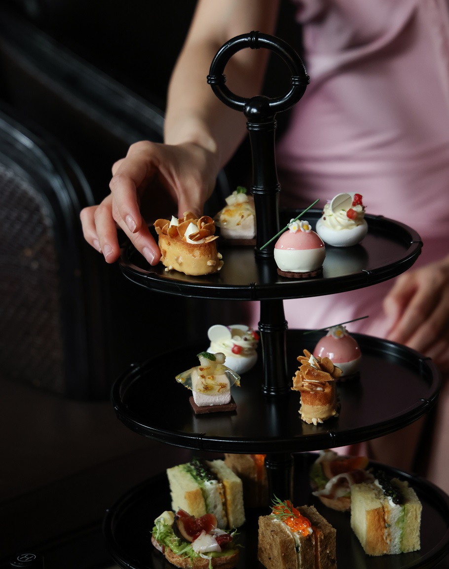 下午茶套餐包含三款风味小食与五款精致甜点,比如:白茶桃子慕斯以轻盈白茶慕斯邂逅清甜蜜桃;柠檬草莓帕夫罗瓦于酥脆蛋白饼之上,缀以明亮柠檬与酸甜草莓;桂花香梨慕斯以桂花花瓣点缀的香梨慕斯,满溢芬芳;杏仁费南雪融汇杏仁馥郁与桧木温暖;伯爵茶司康饼则散发佛手柑的柑橘清香,佐以凝脂奶油与自制果酱。