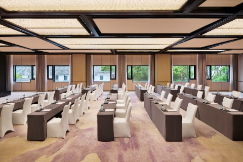 酒店拥有2300平方米宽敞明亮的宴会会议活动空间,其中745平方米的无柱大宴会厅,伴有前厅及特色玻璃天幕厅,至多可容纳500人。另有10个多功能会议空间以夜幕紫为主色,天花板棱边造型寓意“打开天窗说亮话”,并配备高水准视听设备及设施,并提供现场技术支持。经验丰富的会务团队全程提供定制化服务,确保每一场活动高效流畅、灵感迸发。