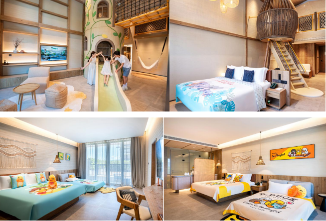 为孩子量身打造的奇趣小天地,童话树屋城堡家庭双卧套房、奇幻鸟巢童趣亲子房、奶龙亲子主题家庭房、B.Duck小黄鸭亲子主题家庭房,四大明星房型可供选择。配备儿童益智玩具、洗漱套装+可爱浴袍拖鞋……在这里,共同住进一段温柔的海岛童话里。