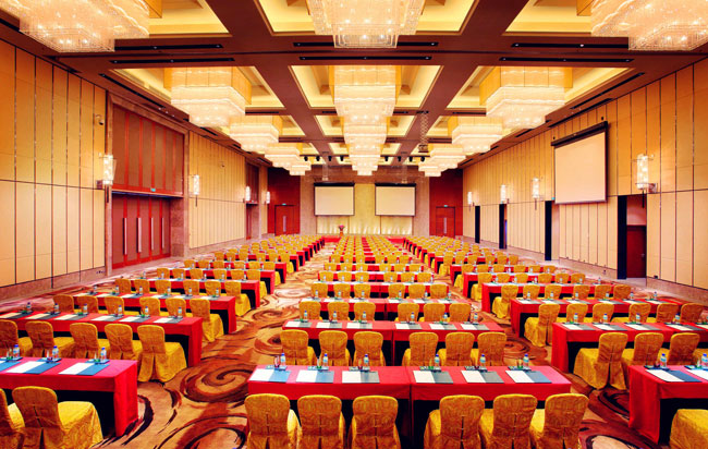 酒店拥有灵活的会议空间,包括超大无柱大宴会厅, 多功能会议厅,董事会议厅等。作为酒店首推的会议场所--大宴会厅融合了高端假日会务活动对于私密性、创意性和舒适性的全部要求。酒店奉行“细节至上”的原则,致力于为每一位与会宾客提供完美的会务体验。