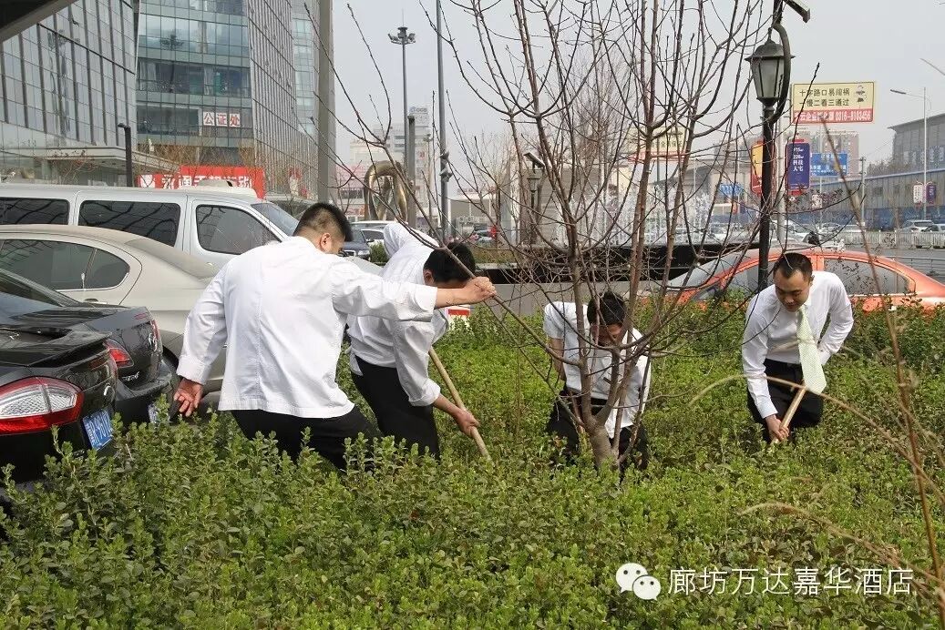 廊坊万达嘉华酒店总经理王幸福先生表示:“我们倡导大家以实际行动来参与这个环保活动,从身边的可见、易行的小行动做起,通过使用节能灯泡、采用可生物降解的清洁用品、安装节水设备、减少蒸汽用量避免浪费、使用污水处理设备等措施,尽可能从各个方面做到节能环保、坚持可持续发展战略、向员工和客人普及并提高环保意识。将承诺转化为生活习惯。今天是廊坊万达嘉华酒店自开业以来第3次参与地球一小时活动。希望通过这次的“地球一小时植树活动”增强市民的环保意识,为改善地球环境贡献一份力量!”
