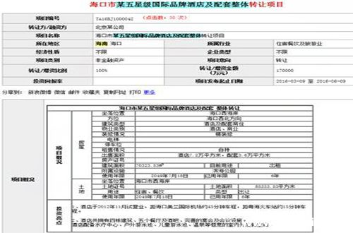 日前,北京产权交易所官方网站上一则“海口市某五星级国际品牌酒店及配套整体转让项目”的信息,引起记者的注意。