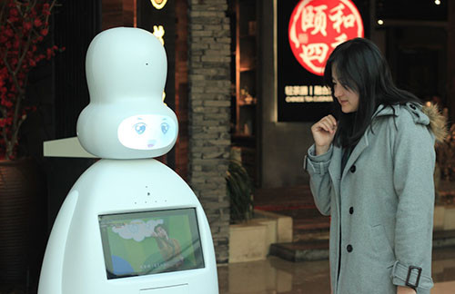 小编了解到, 2014年,中国市场机器人销量约4.8万台,约占全球销量四分之一,连续两年成为全球第一大工业机器人市场。工业型机器人发展日趋成熟,不仅提高了效率,还很大程度上节省了企业成本。但随着社会进步和人口老龄化问题日益突出,机器人产业呈现出新的发展方向——服务型机器人。“从登记、接待、退房,甚至包括提取重物,未来酒店服务机器人都能实现。”木爷机器人负责人指着台上半人高的机器人介绍,“这是木爷机器人为集团酒店量身打造的‘酒店智能机器人cooky,这是一款基于卓越的移动性能,集成语音交互、视觉识别与认知、规划与决策等能力,并包含各类个性化应用和设计的机器人产品。”