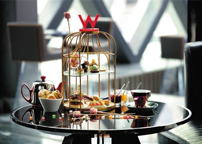 日前,W设计师跨界下午茶在北京长安街W酒店W Lounge推出,甜品造型融合了HEFANG Jewelry珠宝与Royal Dinner皇家餐具系列元素,迷你版金色鸟笼作为W下午茶容器。(人民币198元+/一位,特别推广人民币258元+/两位)。