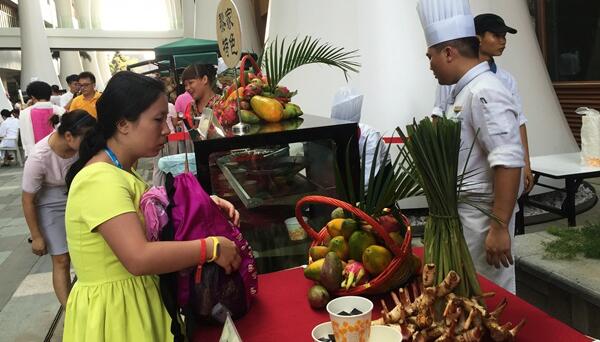 “百米长廊两旁的美食小摊让我找到了谈恋爱时逛集市的温馨感觉。”今年已经55岁的广东游客张美霞高兴地说,五星级酒店内的餐厨云集在一条长廊上,大家可以边走边看边吃,美食都是酒店或签约商家供应,比街边小摊卫生。