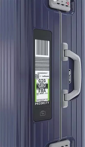 “Rimowa电子标签”是首款面向行李的数字化、全集成移动解决方案。当今业界的常规做法仍然是人工将纸质行李标签贴到行李箱上,而汉莎乘客通过使用“Rimowa电子标签”在家中或者在路上用汉莎专用App登记行李。只需点击一下,乘客即可通过蓝牙将来自电子登机牌的数据从智能手机传送至贴有“Rimowa电子标签”的行李上。行李数据将立即显示在集成行李箱中的数据模块上。以这种方式登记的行李箱只需放在汉莎行李托运柜台的传送带上。电子数据模块的大小及形状与如今的纸质行李标签相同。重要信息在潮湿、高温、低温、撞击和震荡下不受影响,且不会被撕掉。