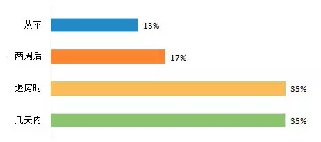 美国酒店管理调查公司Software Advice调查表明,大部分客人愿意在退房时或离店后几天内给酒店反馈。时间越长,客人反馈的可能性越低。因此,如果你重视客人反馈,就别拖太久。