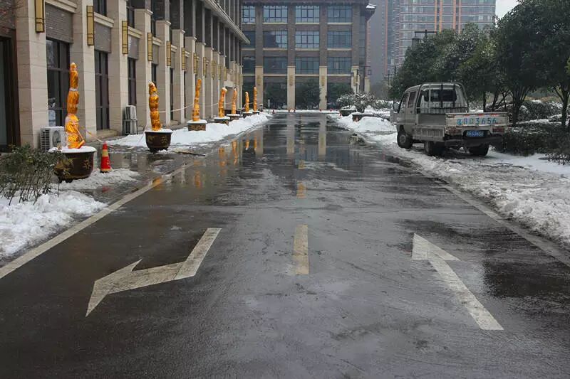 经过三轮的扫雪除冰,截止到目前酒店大门主干道及周边道路清扫干净,并完成路面撒盐处理。