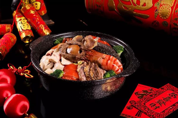 内含大连活鲍鱼、水发海参、清远鸡、白虾、带皮五花肉、去皮五花肉、猪蹄筋、白灵菇、娃娃菜、带皮鹌鹑蛋、鲍汁